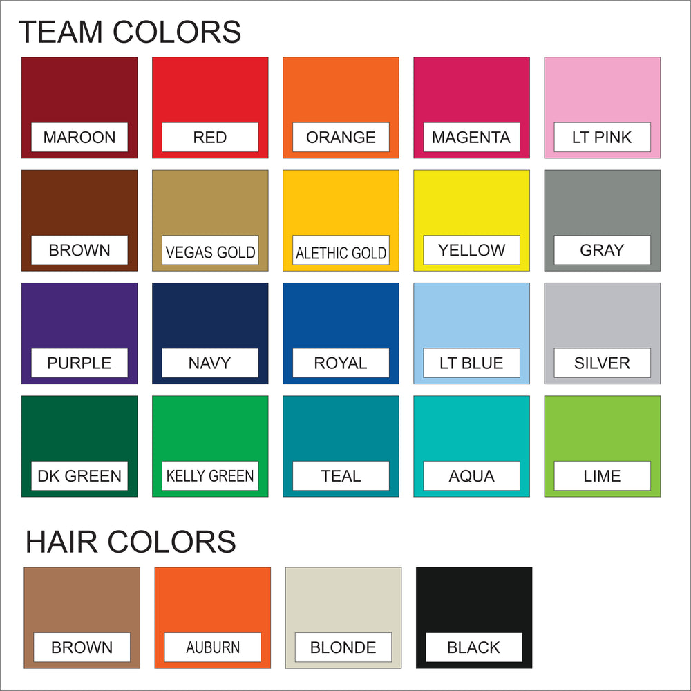 DTF Transfer on Rawhide Leatherette Round Ornament with Gold String. You many personalize the name, number, uniform color, ball color and hair color. Please see chart for available colors.