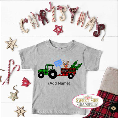 Youth Tractor Buffalo Plaid DTF Heat Transfer 7"
