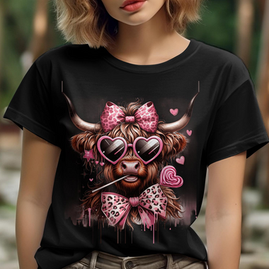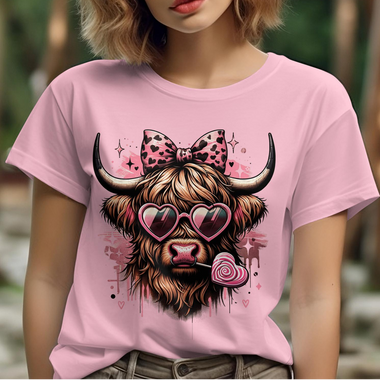 Highland Cow Pink Glasses with Lollipop DTF Transfer