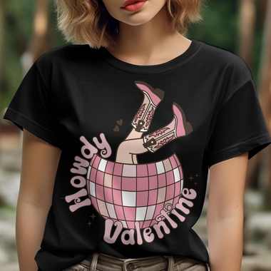 Howdy Valentine Disco Ball and Boots DTF Transfer