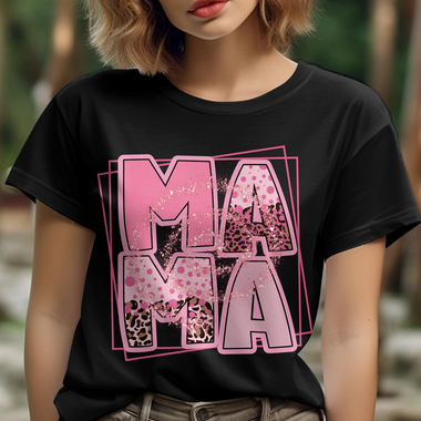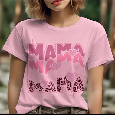 Mama with Sparkly Hearts and Pink Leopard DTF Transfer