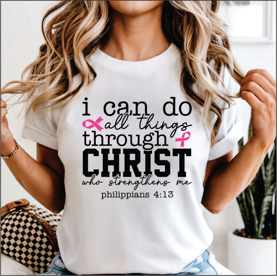 I Can Do All Things Through Christ Breast Cancer Awareness DTF Transfer