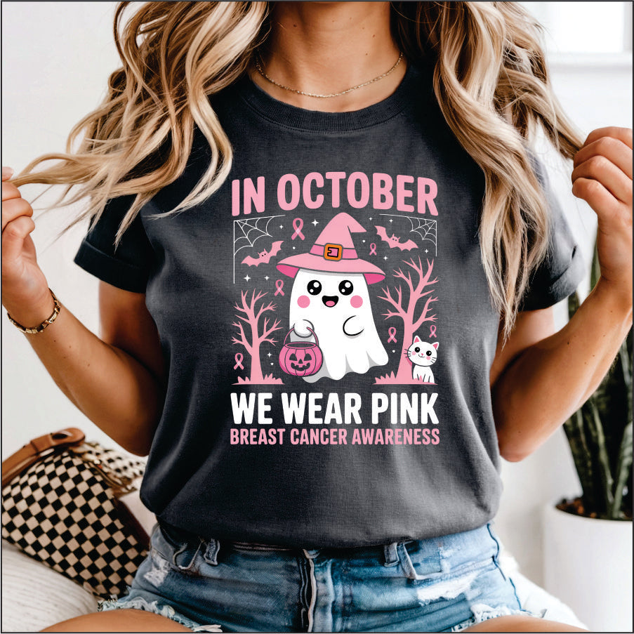 In October We Wear Pink Ghost Breast Cancer Awareness DTF Transfer