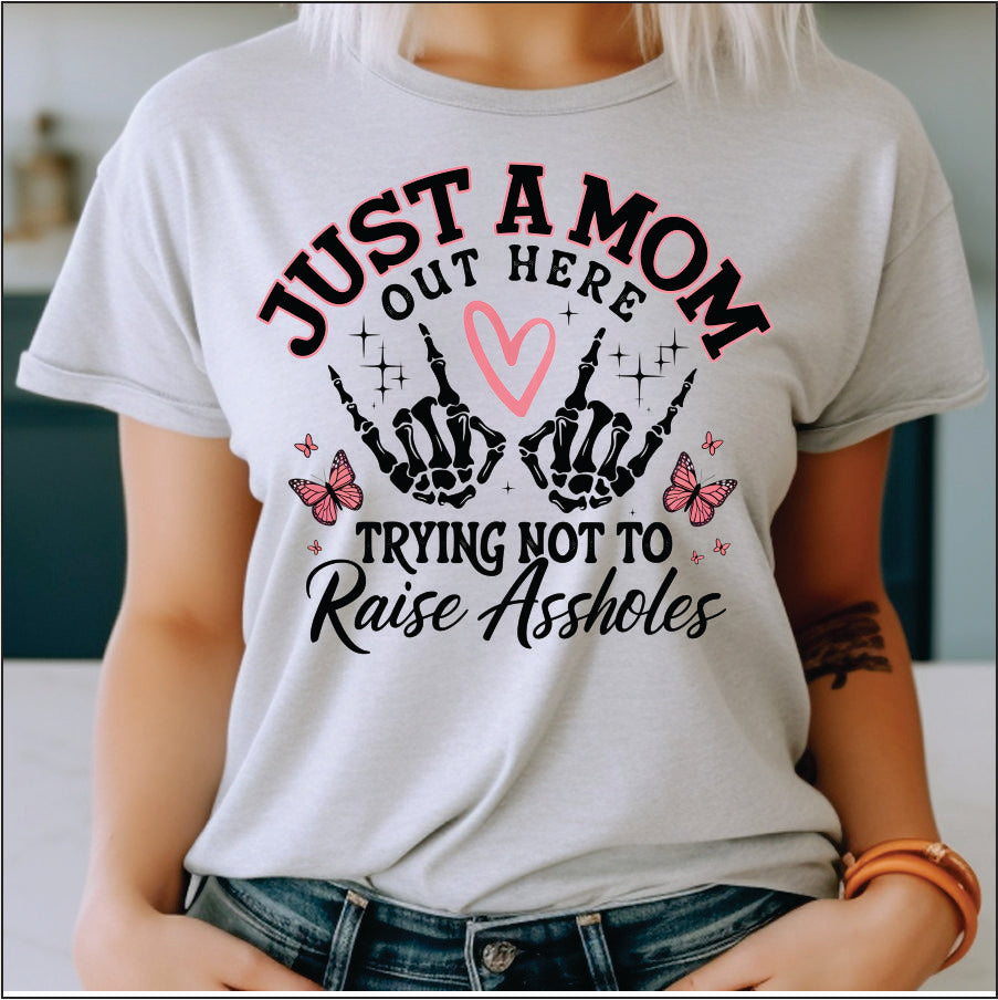 Just a Mom out here Trying not to Raise A**holes DTF Transfer