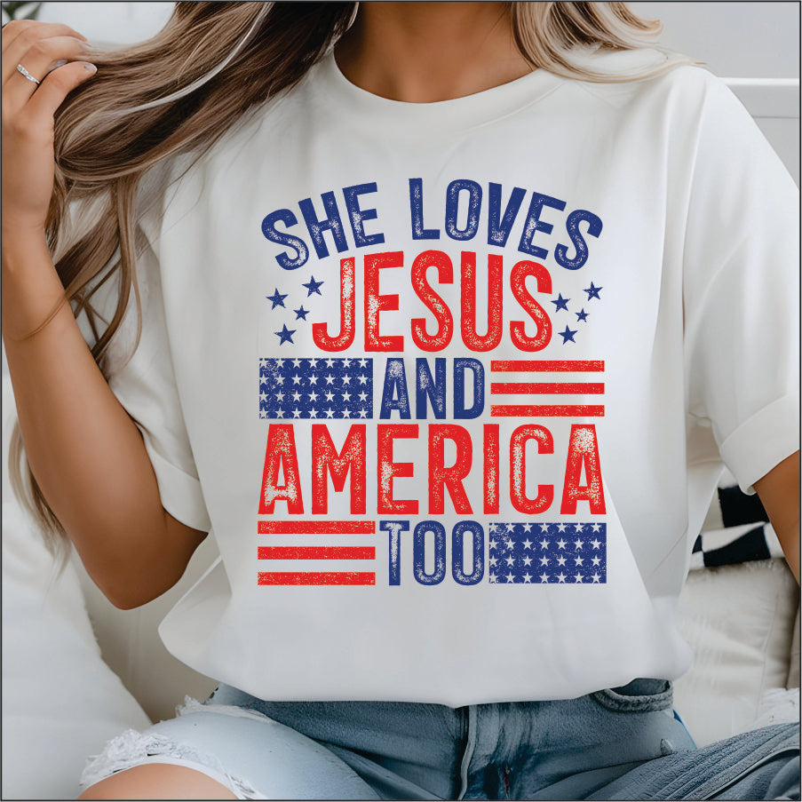 She Loves Jesus & America DTF Transfer